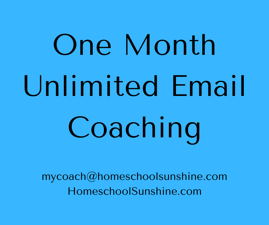 You will receive one month of unlimited email coaching from mycoach@homeschoolsunshine.com. Payments are non-refundable.